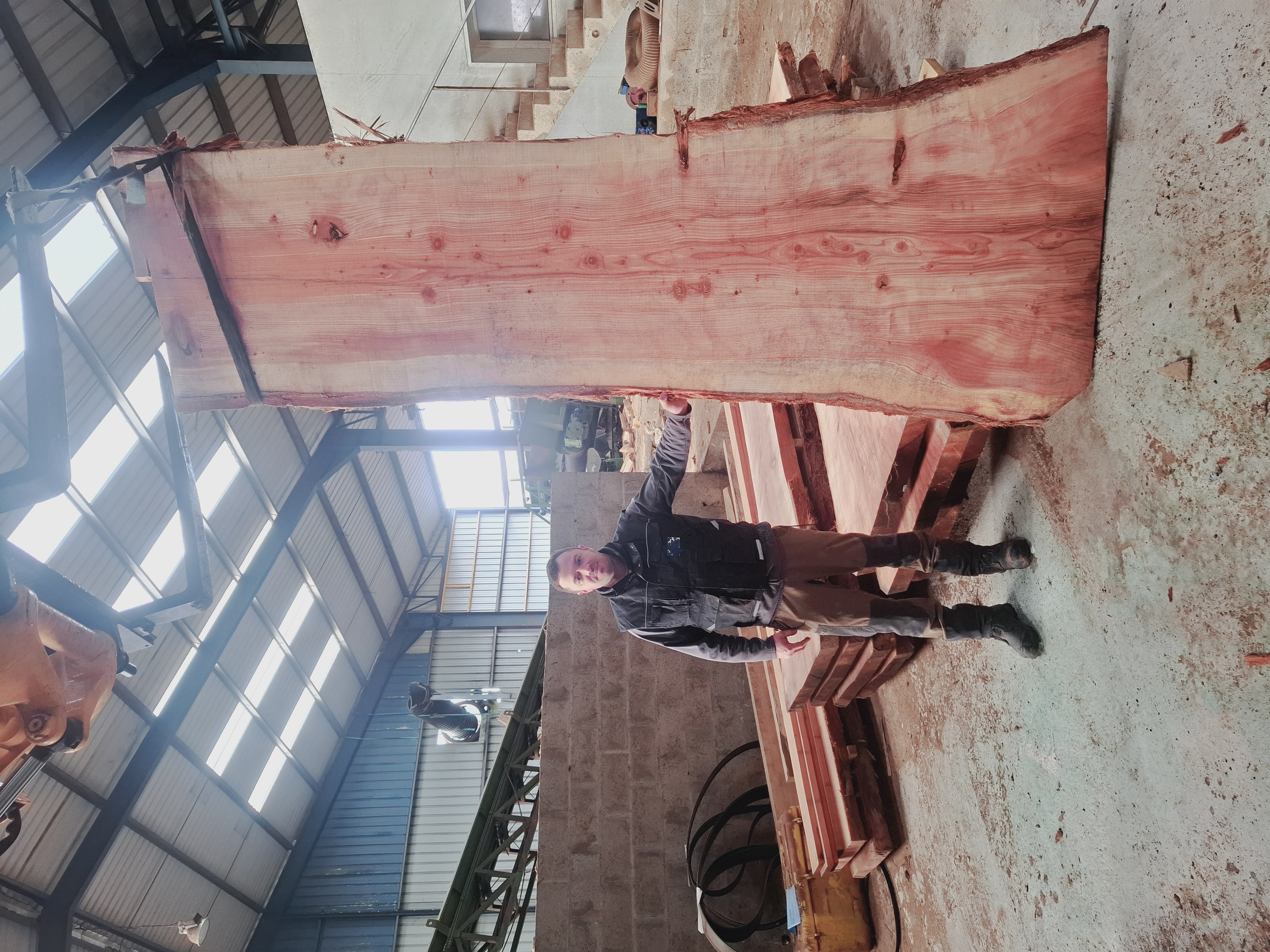 Chaque plateau est scié, séché et préparé localement, avec une attention particulière portée au respect du veinage et aux caractéristiques naturelles du bois. Le séquoia se distingue par sa teinte chaleureuse, son grain fin et son aspect authentique, qui en font un choix idéal pour la fabrication de tables extérieures, bancs, plans de travail, plateaux de mobilier ou éléments décoratifs.